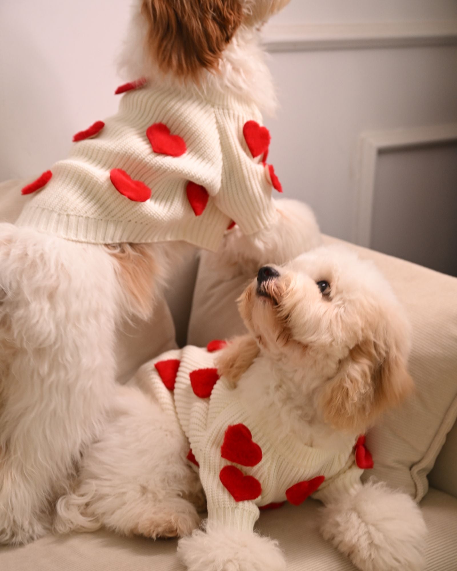 he Cream Heart-3D Motif Pet Sweater! This charming sweater features a delicate 3D heart motif, making it the perfect blend of style and comfort. Crafted with soft, breathable fabric, it ensures that your furry friend stays warm and cozy while looking absolutely adorable.