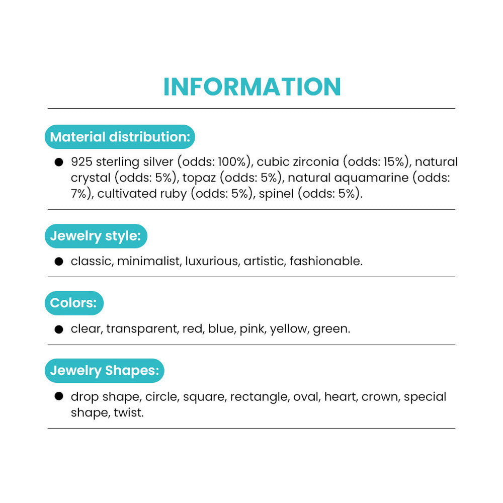 - Diverse Jewelry: Featuring glass, zirconia, zinc alloy & copper.