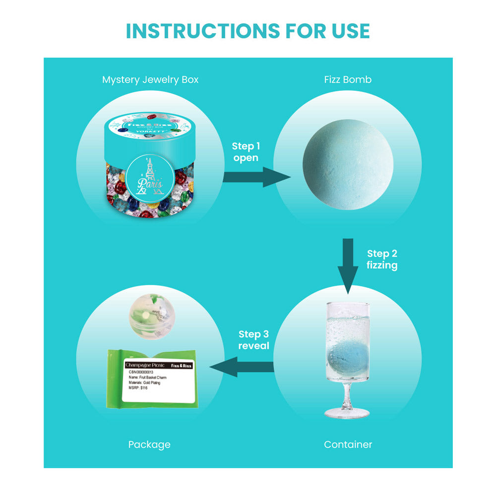 Dive into the mystery of Fizz and Rizz by Yorkett Jewelry! This box contains random travel-themed pendants and chain or bracelet. Each surprise is a delightful charm, perfect for jewelry lovers. The Fizz Bomb Reveal adds an extra layer of excitement. Ideal for those who enjoy a fun, unexpected gift.What's Inside?