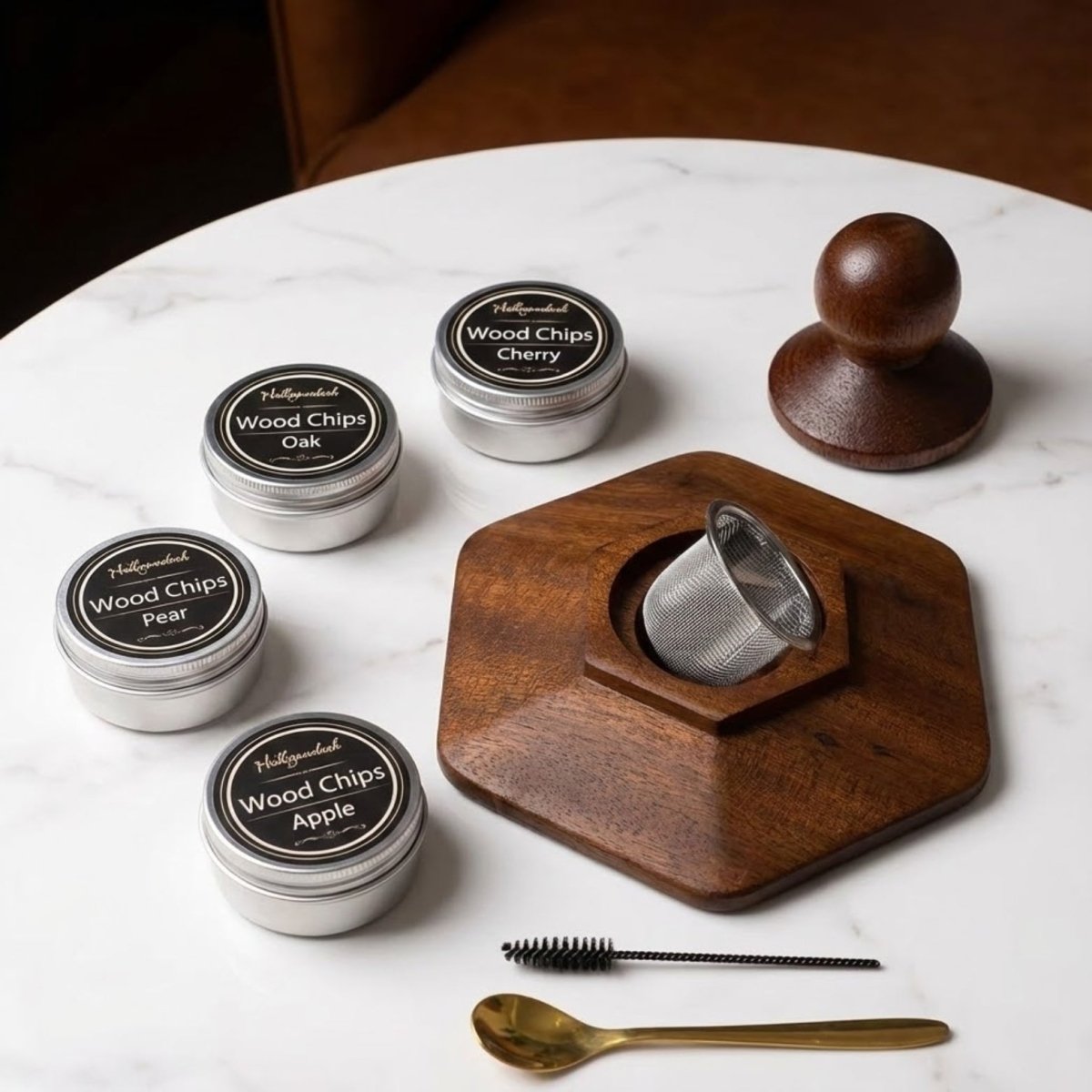 - The Unboxing Experience: Arrives in a premium, gift-ready box. Each component, from the solid wood smoker to the tins of aromatic wood chips, is securely nested, promising a moment of genuine discovery and delight upon opening.