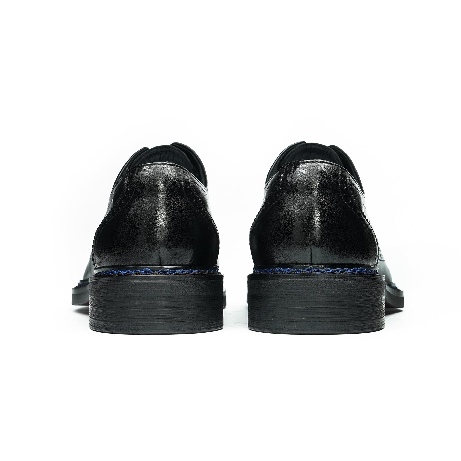 These British-style lace-up shoes are crafted from premium calfskin leather, featuring refined brogue detailing and contrast stitching for added depth and structure. The smooth upper develops a natural sheen, offering durability and easy maintenance. Designed with an adjustable lace-up fit, a square toe, and a sleek low-top silhouette, they deliver modern formality and all-day comfort—perfect for business wear and social occasions.