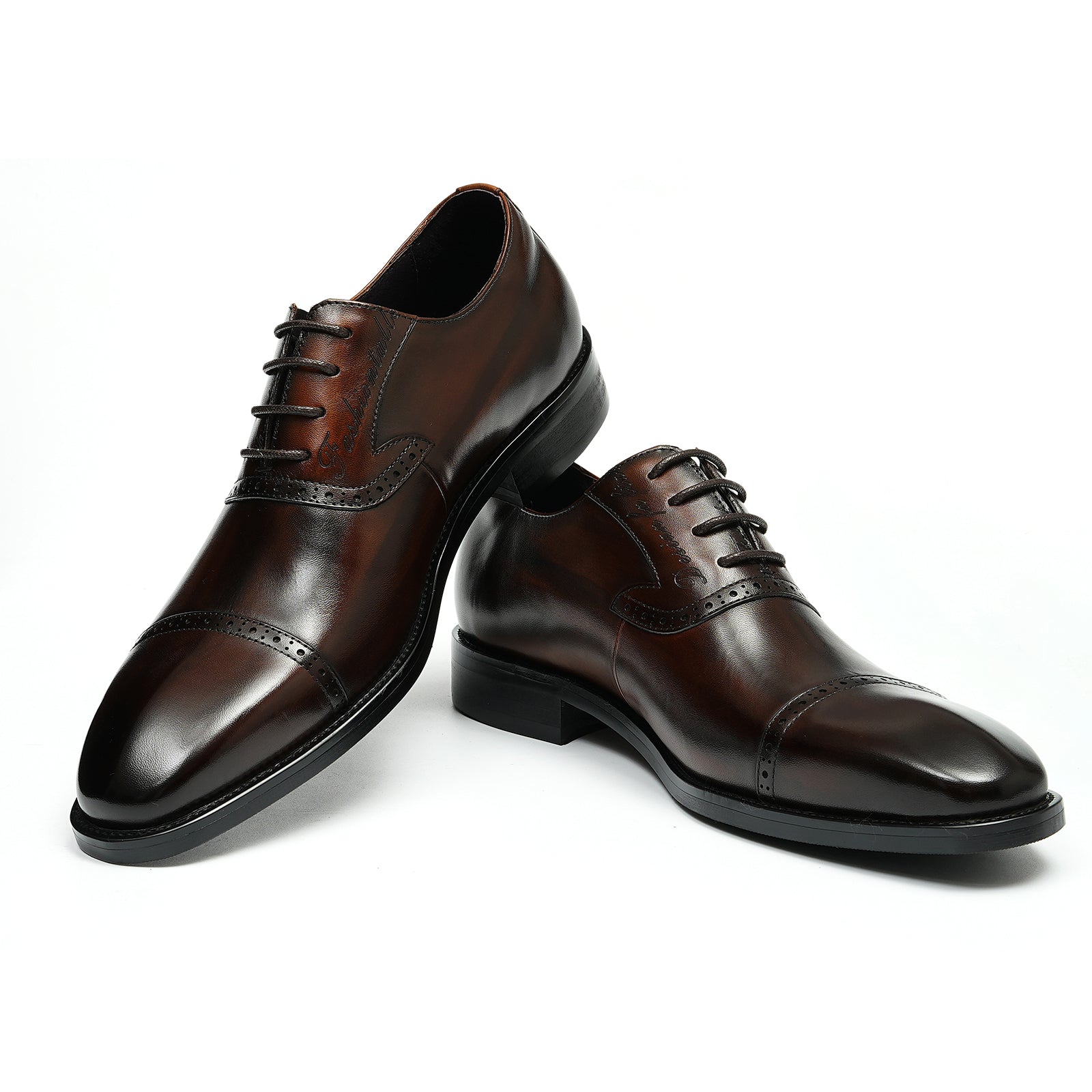 This British-style Oxford features an architectural triple-panel toe cap design, delivering sharp geometric structure with elevated formal presence. Crafted from premium full-grain polished calfskin, the upper resists creasing while developing a rich natural patina over time. Micro-perforated seam detailing adds subtle texture and depth without compromising its clean, minimalist silhouette. A low-profile rubber combination outsole with fine micro-tread enhances grip and stability on both marble floors and city streets, ensuring all-day comfort. Designed for effortless versatility, it pairs seamlessly with tailored suits or smart-casual looks for modern formal wear.